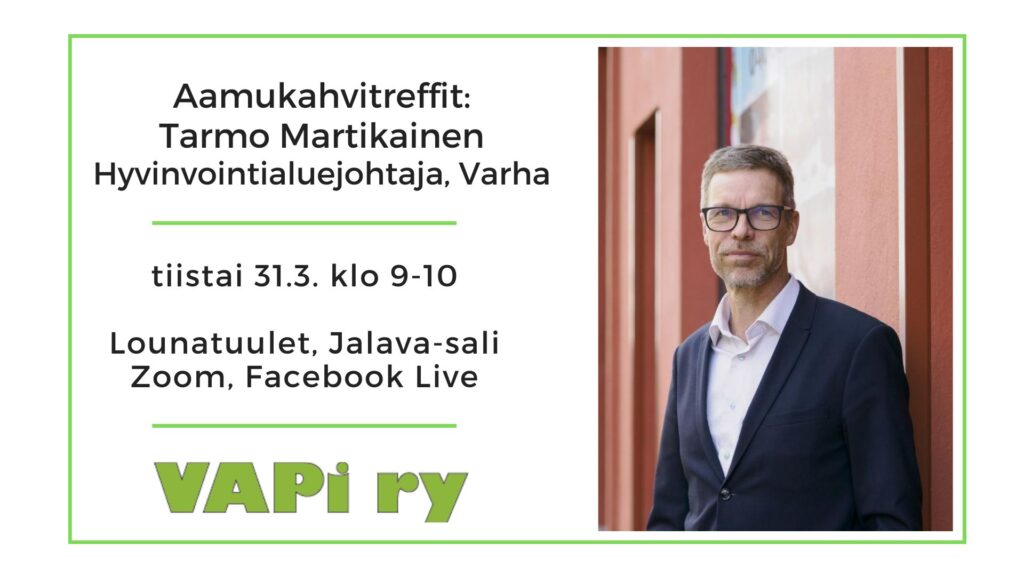 Tilaisuutta voi seurata Varsinais-Suomen VAPIn Facebook-sivulla livelähetyksenä tai Zoom-etäyhteydellä: https://us06web.zoom.us/j/82768497874